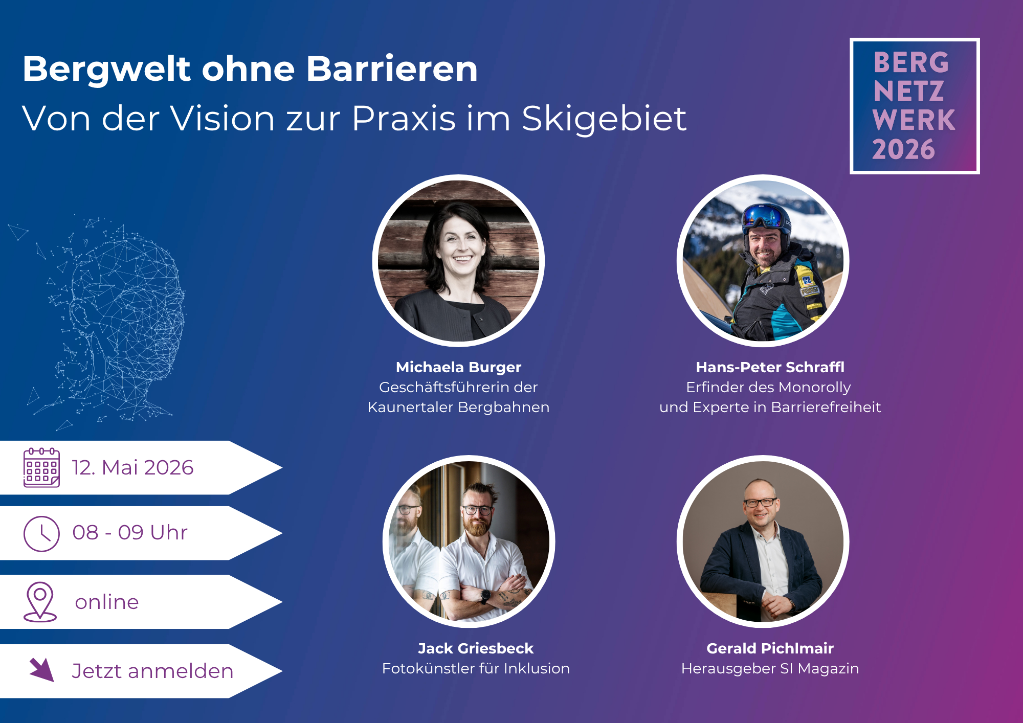 Seit acht Jahren bringt das BergNetzWerk Entscheidungsträger aus der alpinen Tourismus- und Seilbahnbranche zusammen. 2026 erwarten die Teilnehmer Keynotes aus den Bereichen Finanzen, Spa und Tunnelbau. Bonus: ein interaktives Format zum Erfahrungsaustausch.