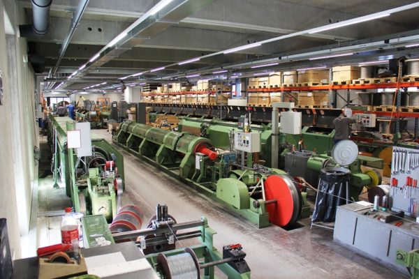 Mit drei Verseilmaschinen, sogenannten „Zuschlagmaschinen“ und zehn Litzenschlagmaschinen können Drahtseile bis 28 Millimeter Durchmesser und knapp