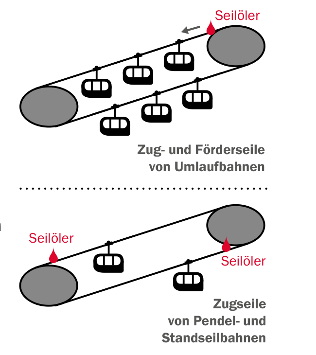 Eine klassische Seilnachkonservierung ist zudem sehr personal-, zeit- und kostenintensiv. „Bei urbanen Seilbahnanlagen müssten die Maschinisten stets in der Nacht mit dem Schmierpinsel losziehen – das ist absolut praxisfern“, sagt Michael Kronschnabl vom Schmierstoffhersteller ELASKON.