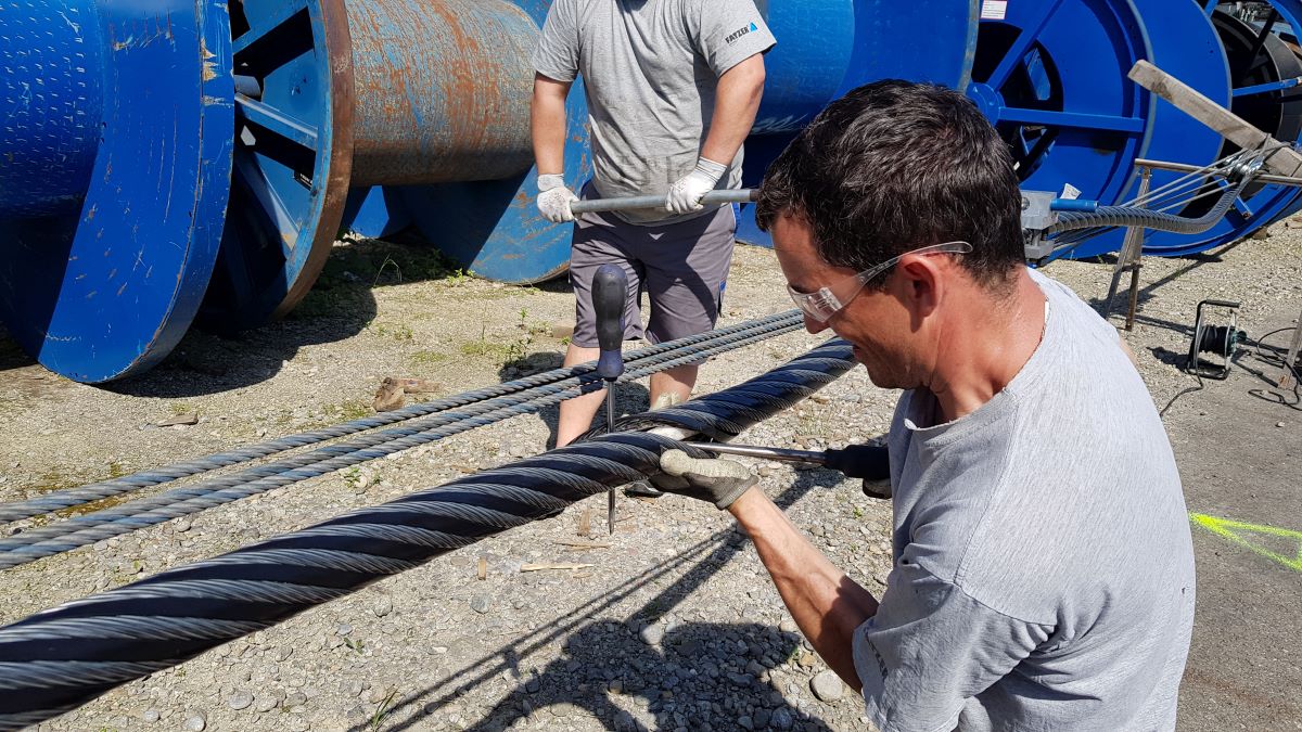 Ausgangspunkt des Projekts war gelebte Praxis bei FATZER: Auf der firmeneigenen Testseilbahn im Drahtseilwerk Romanshorn (Schweiz) setzt das Entwicklungsteam schon länger kürzere Spleiße ein. Denn ein Seil, das vor lauter Testbereichen nur noch aus Spleiß besteht, ist kaum praktikabel. „Schon damals beobachteten wir, dass die vorgeschriebene Spleißlänge von 1.200 x Seildurchmesser ohne Probleme unterschritten werden kann“, berichtet Christof Nater, Forschung und Entwicklung bei FATZER.