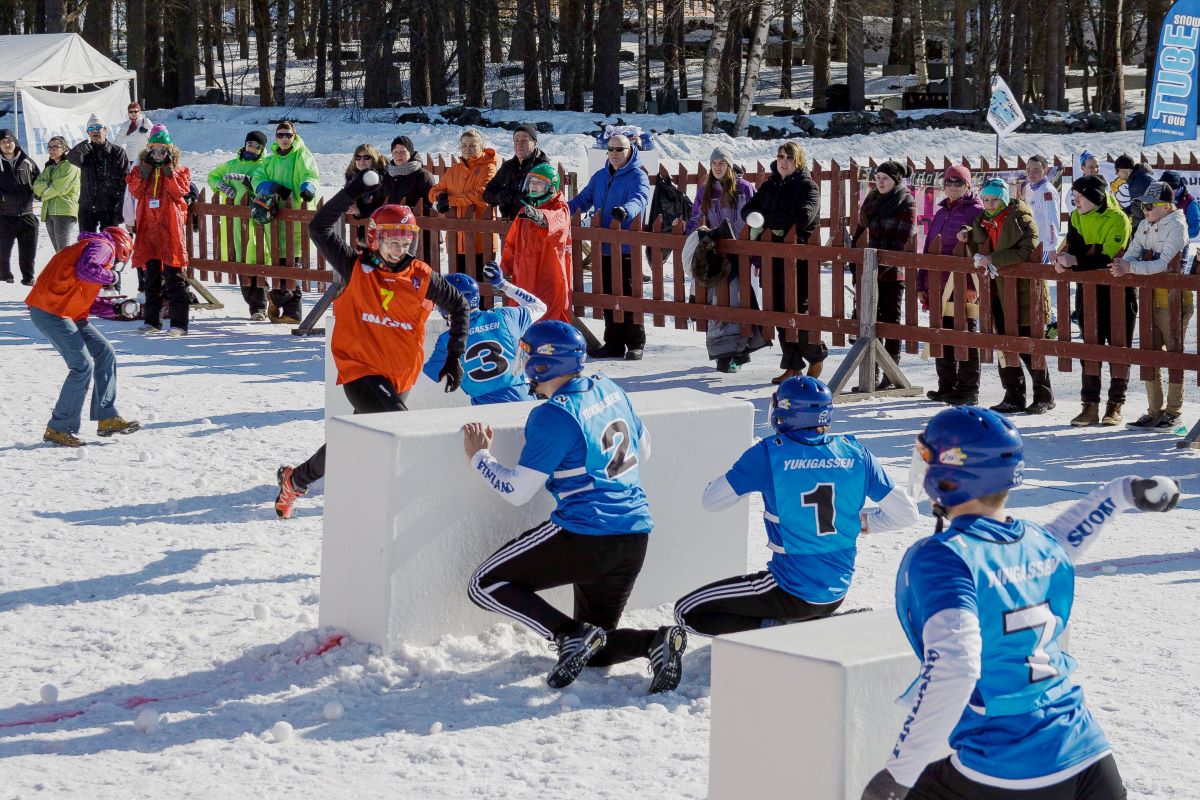 Die Mannschaften bewerfen sich gegenseitig mit Schneebällen. Auf dem Spielfeld stehen kleine Schutzwände, hinter denen man sich vor den gegnerischen Bällen verstecken kann.