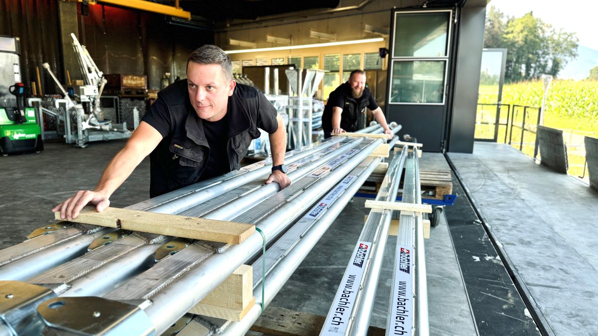 Reto Koch und Albert Wyss bei der Vorbereitung einer Teillieferung von neuen Schneilanzen.