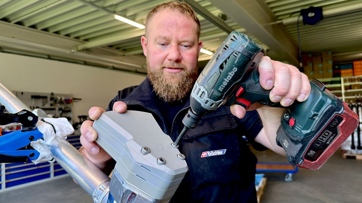 Eine SnoTek TRINITY wird von Albert Wyss zusammengebaut. Im Neubau gibt es mehr Platz, das vereinfacht die Montage.