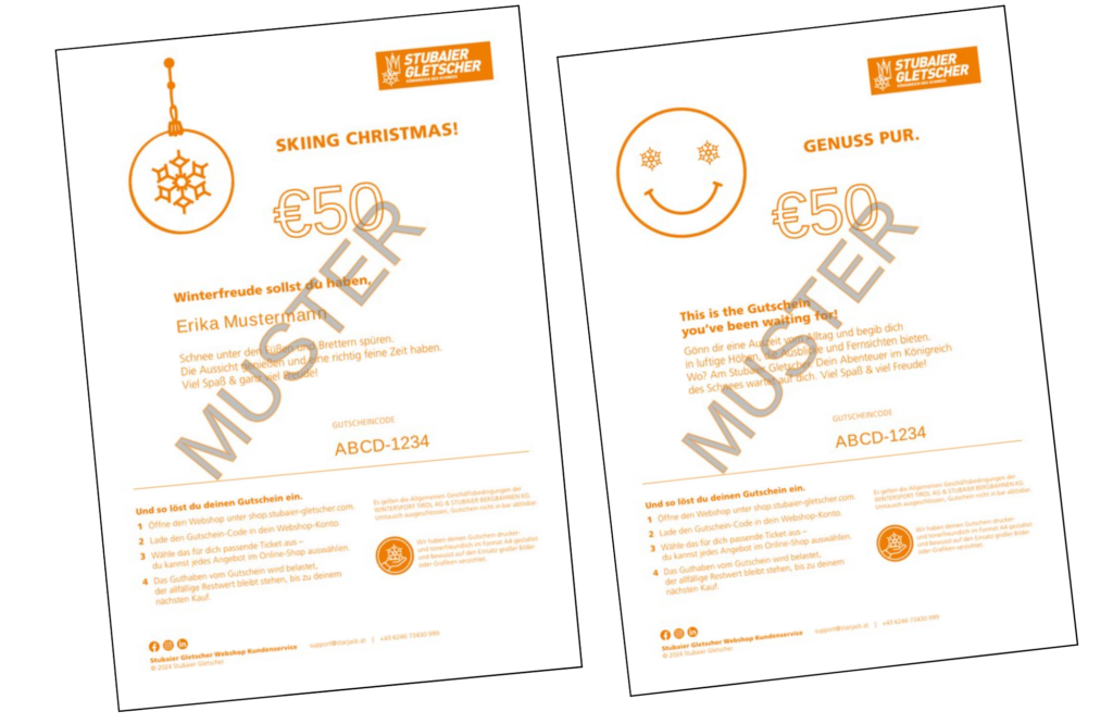 Das neue Gutschein-Tool ermöglicht es, Wertgutscheine im Look und Feel des Unternehmens zu gestalten. Durch diese individuelle Anpassung können die Gutscheine das Corporate Design der jeweiligen Bergbahn widerspiegeln und so das Markenerlebnis auch beim Schenken verstärken.