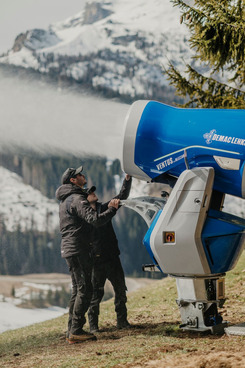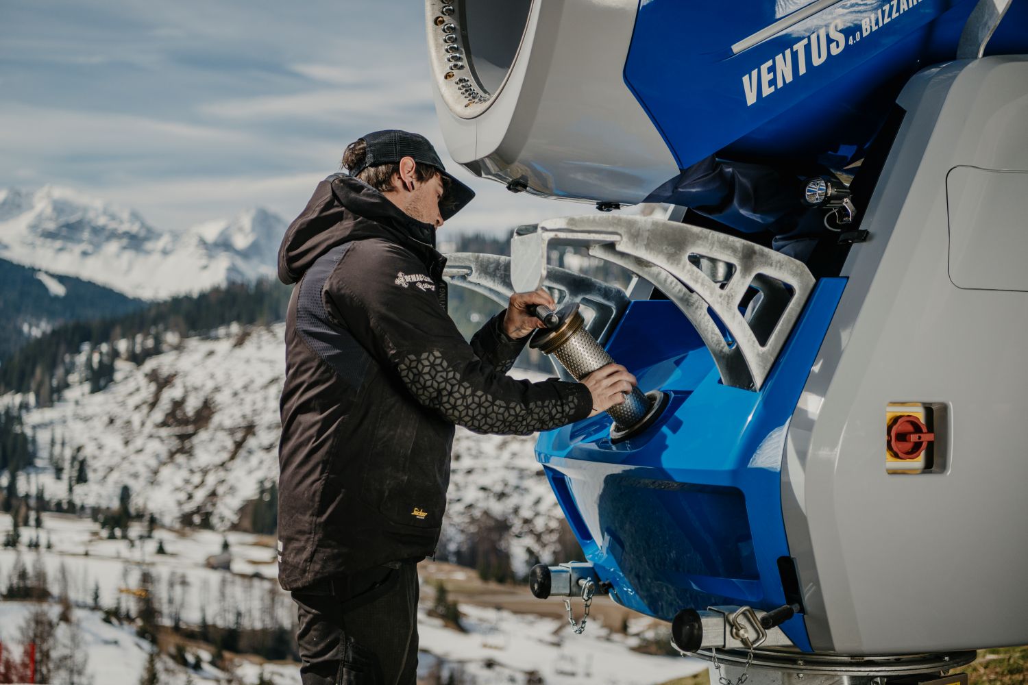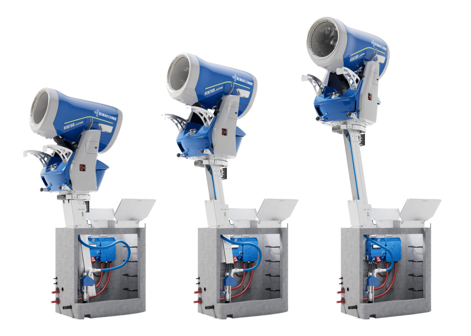 Ein weiteres Alleinstellungsmerkmal am Markt: Der Schneeerzeuger bleibt auch in abgesenkter Position zu hundert Prozent funktionsfähig und kann in jeder beliebigen Position beschneien. So können auch während der Wartung laufend Propeller- oder Servicetests durchgeführt werden.