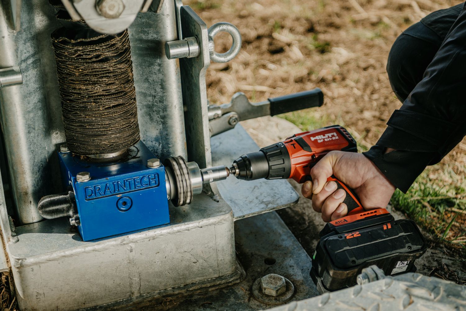 Für das Heben und Senken des E-TOWERs ist außerdem keine schwere Ausrüstung erforderlich, da zum Aktivieren des Mechanismus lediglich ein Akkuschrauber benötigt wird.