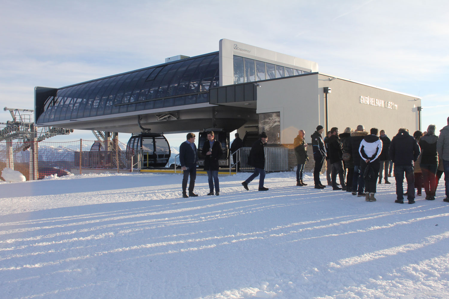 Nur das Nadelöhr bei Dienten trübte die Freude. Zwölf Minuten Fahrzeit auf einem 27 Jahre alten, unbequemen, fixgeklemmten Zweier-Sessellift, Gegenverkehr auf der Skibrücke „rissen einen Zacken in die Krone“. Doch dank DOPPELMAYR und dem Planungsbüro KLENKHART ist diese Krone nun geschlossen: Die neue Gabühelbahn verkürzt nicht nur die Fahrzeit auf 5,4 Minuten, sondern erhöht auch die Förderleistung von 1.400 auf 2.000 Personen pro Stunde – im Endausbau sogar auf 2.400. 43 OMEGA IV-Kabinen von CWA steigern den Fahrkomfort enorm.