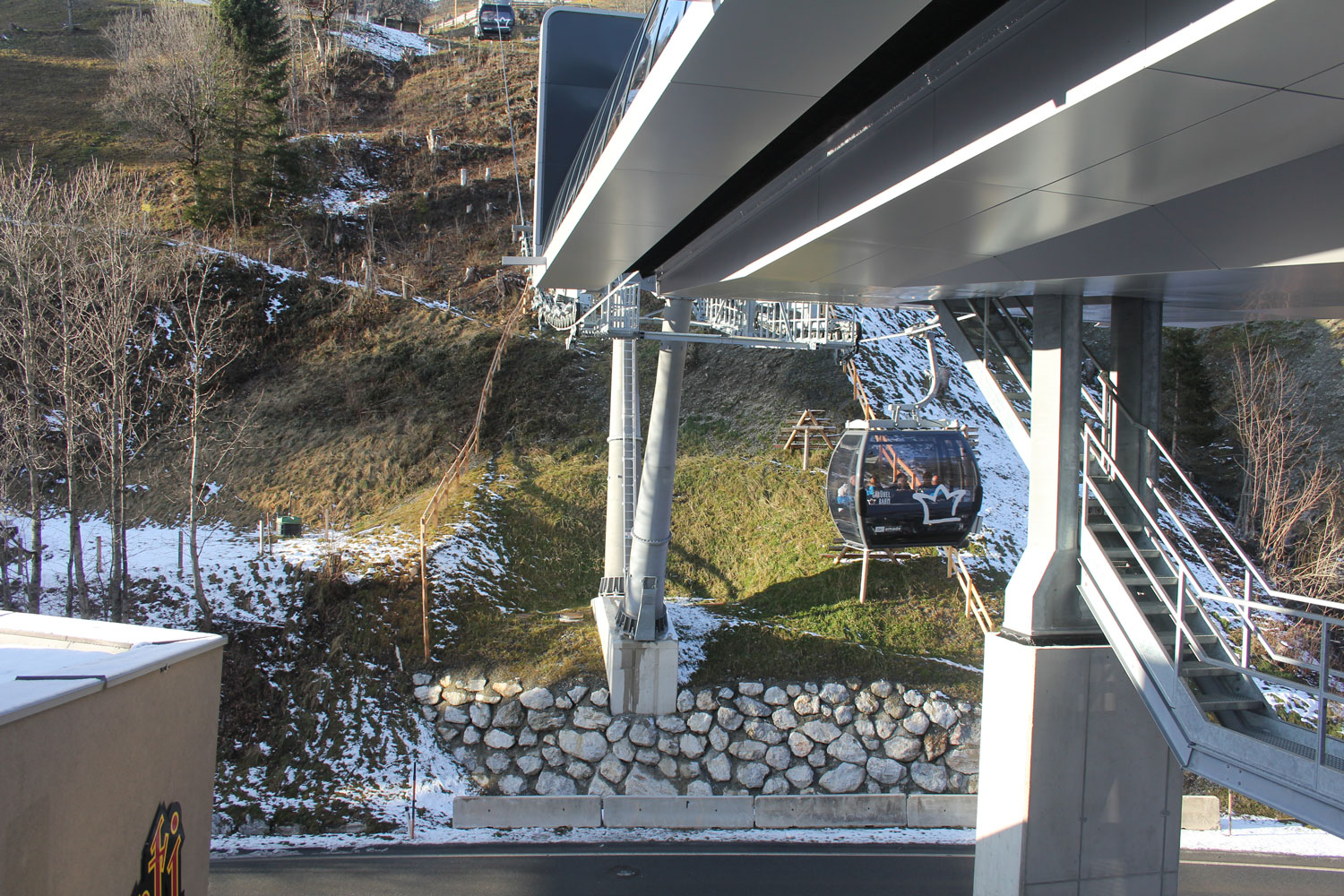 „Dazu muss aber die Seilbahn gleich nach der Talstation die Straße, die Dienter Arche und ein Quellschutzgebiet überqueren“, so Angela Haslinger, Geschäftsführerin der Hochkönig Bergbahnen GmbH. Die Platzverhältnisse sind so eng, dass die Garagierung mithilfe eines Schleifenbahnhofs in der Bergstation erfolgen muss. Dafür ist die Talstation nun direkt ans Skizentrum Dienten angeschlossen.