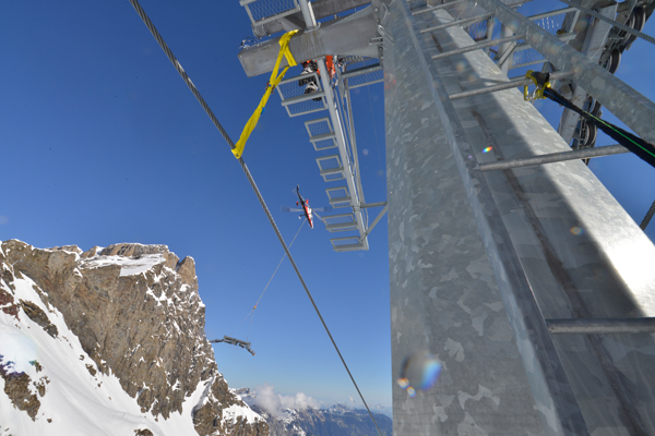 „Aufgrund unserer topografischen Lage fliegen wir alle Rollbatterien direkt ab und auf die Stütze, Wirtschaftlichkeit und Zeitersparnis spielen hier natürlich eine wichtige Rolle. Die gute Vorbereitung der Rollbatterien (Flugbereit) durch das Seilbahnunternehmen und eine gute Kommunikation zwischen Pilot, Flughelfer und Montageteam während dem Fliegen sind sehr wichtig, denn es kommt hier auf jeden Zentimeter an.