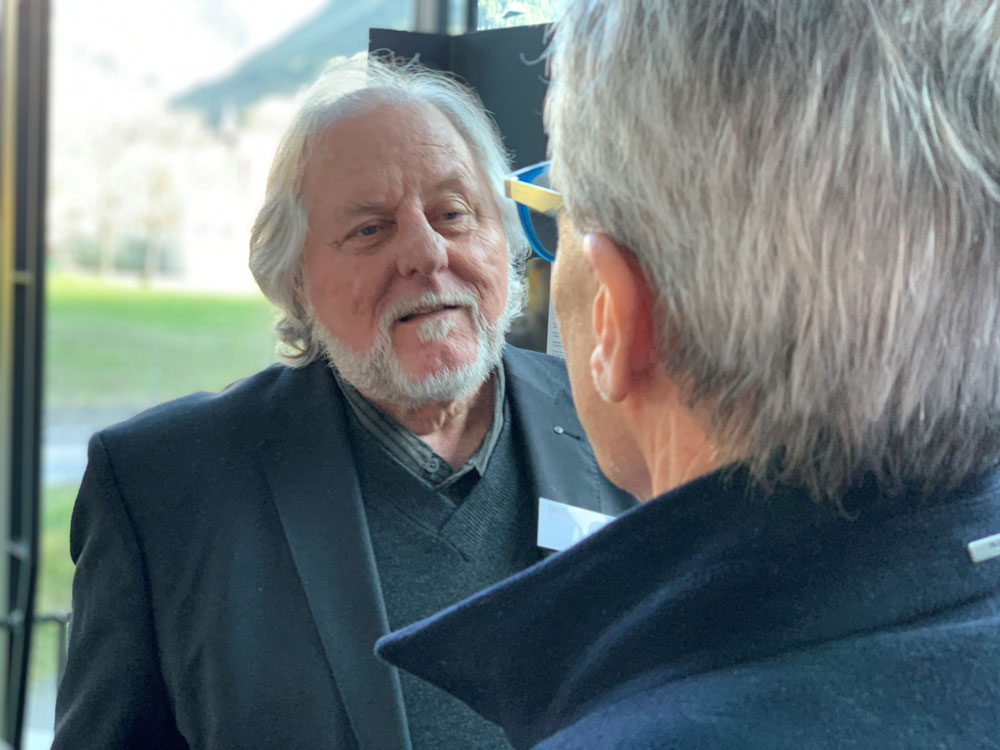 Am Abend trafen sich dann alle Gäste wieder am neuen SISAG-Tower, um die frisch produzierten Würste zu verspeisen, den einstudierten Melodien zu lauschen und sich die brandneuen Filme anzusehen. Somit bildeten die Gäste selbst einen feierlichen Rahmen, um SISAG-CEO Erich Megert in den Ruhestand zu verabschieden, Marco Zgraggen als neuen Geschäftsführer zu begrüßen, 35 Jahre Unternehmensgeschichte zu feiern und das neue Firmengebäude einzuweihen. Zum Abschluss gab es als Gastgeschenk für jeden noch eine Wasser- karaffe – mit je einem typischen SISAG-Felsen in der Mitte.