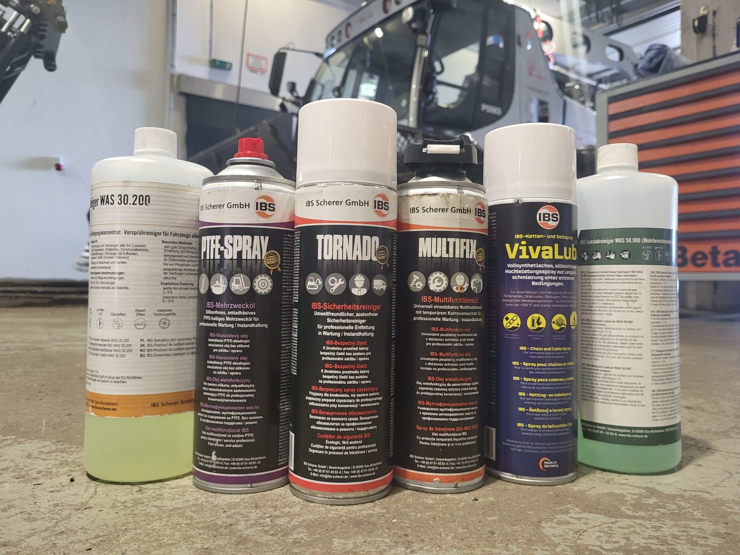For chains and cables, IBS offers VivaLub, a fully synthetic, silicone-free high-performance spray that ensures long-lasting lubrication even under extreme conditions.