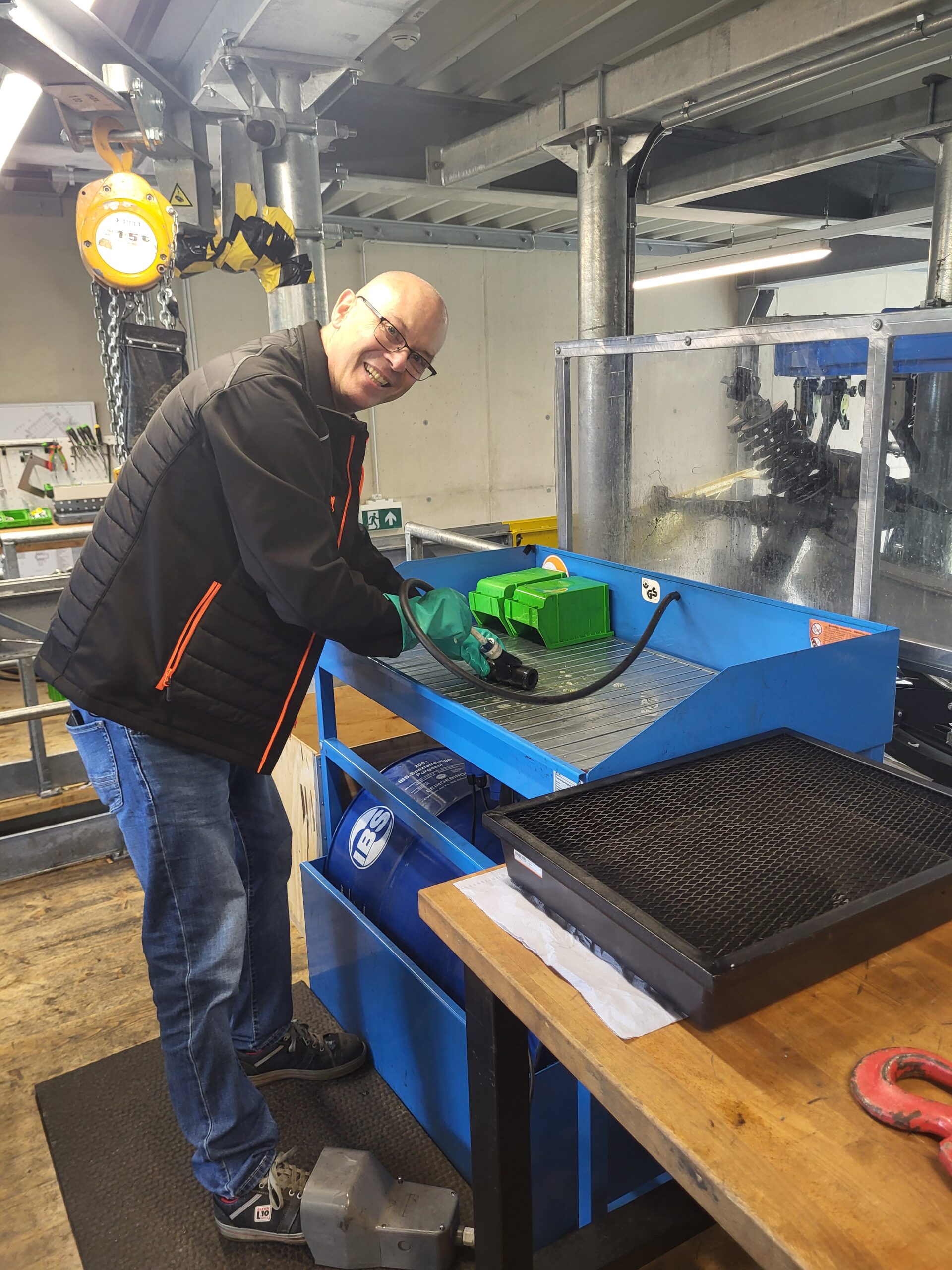 The cleaner is collected in a drum and disposed of by IBS. IBS also services the parts cleaning system once a year – a true all-inclusive package.