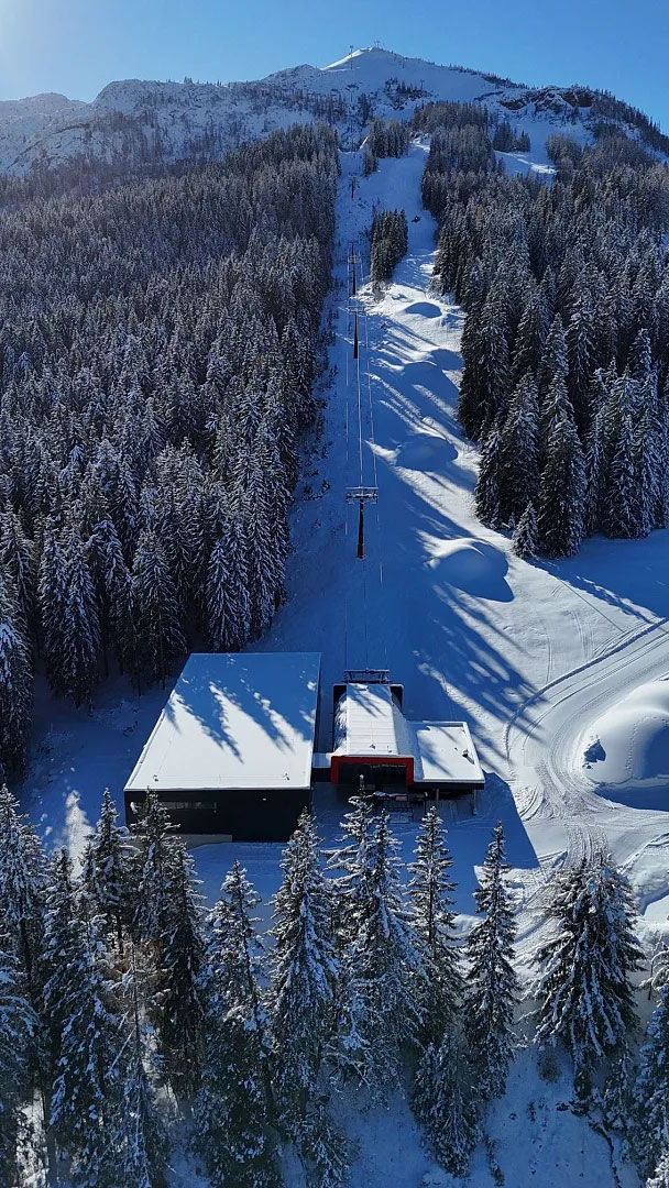 A similar expansion is seen with the Senderbahn at Hauser Kaibling (Styria) up to the Planai. The new 10-person gondola replaces the 4-person chairlift of the same name and will operate autonomously. The roof of the top station doubles as a ski slope.