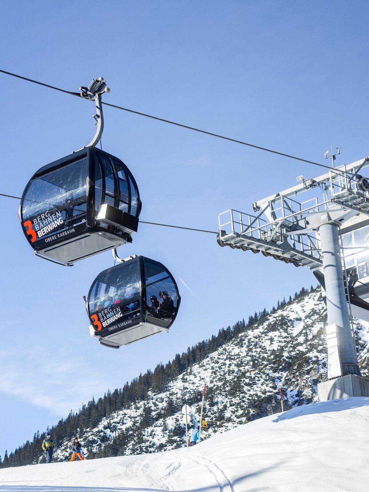 The Obere Karbahn II in Berwang (Tyrol) is part of a larger modernization project. It replaces the upper section of the Thanellerkar surface lift and connects to the first section, Obere Karbahn I, as well as the 6-person Thanellerbahn chairlift.