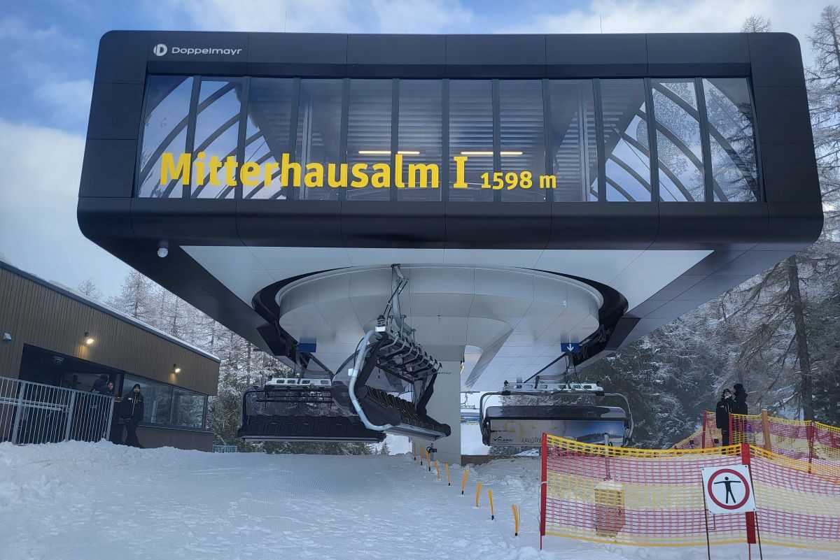 The Dachstein West ski area (Salzburg/Upper Austria) also opted for second-hand lifts: the 6-person Jennerwiesen chairlift from Berchtesgaden was moved to the Riedlkaralm and now operates as the Angeralmbahn.