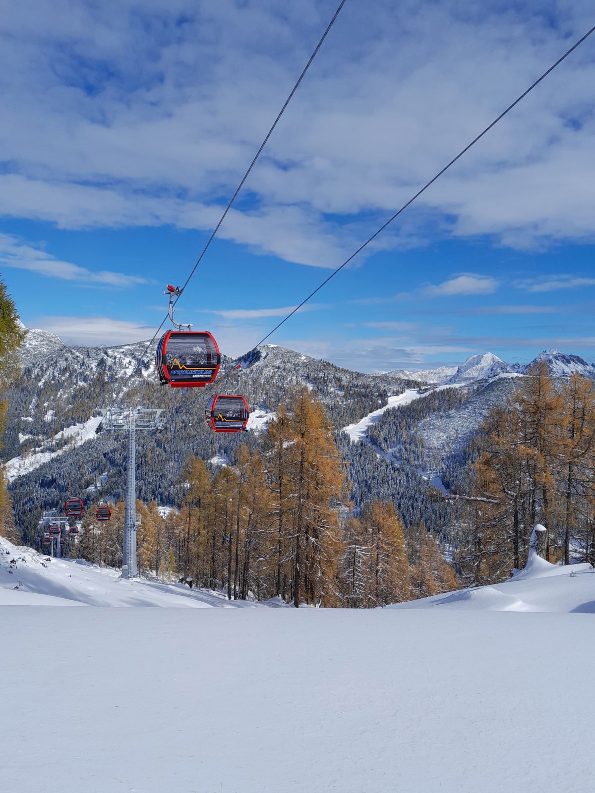The Schwarzwandbahn in Zauchensee (Salzburg) is being upgraded from a 4-person to a 10-person gondola. After almost 40 years, a completely new replacement system has been built, which will also transport pedestrians to the highest viewpoint on the Gamskogel. The lift’s capacity is increased by 35 percent to 2,300 people per hour.