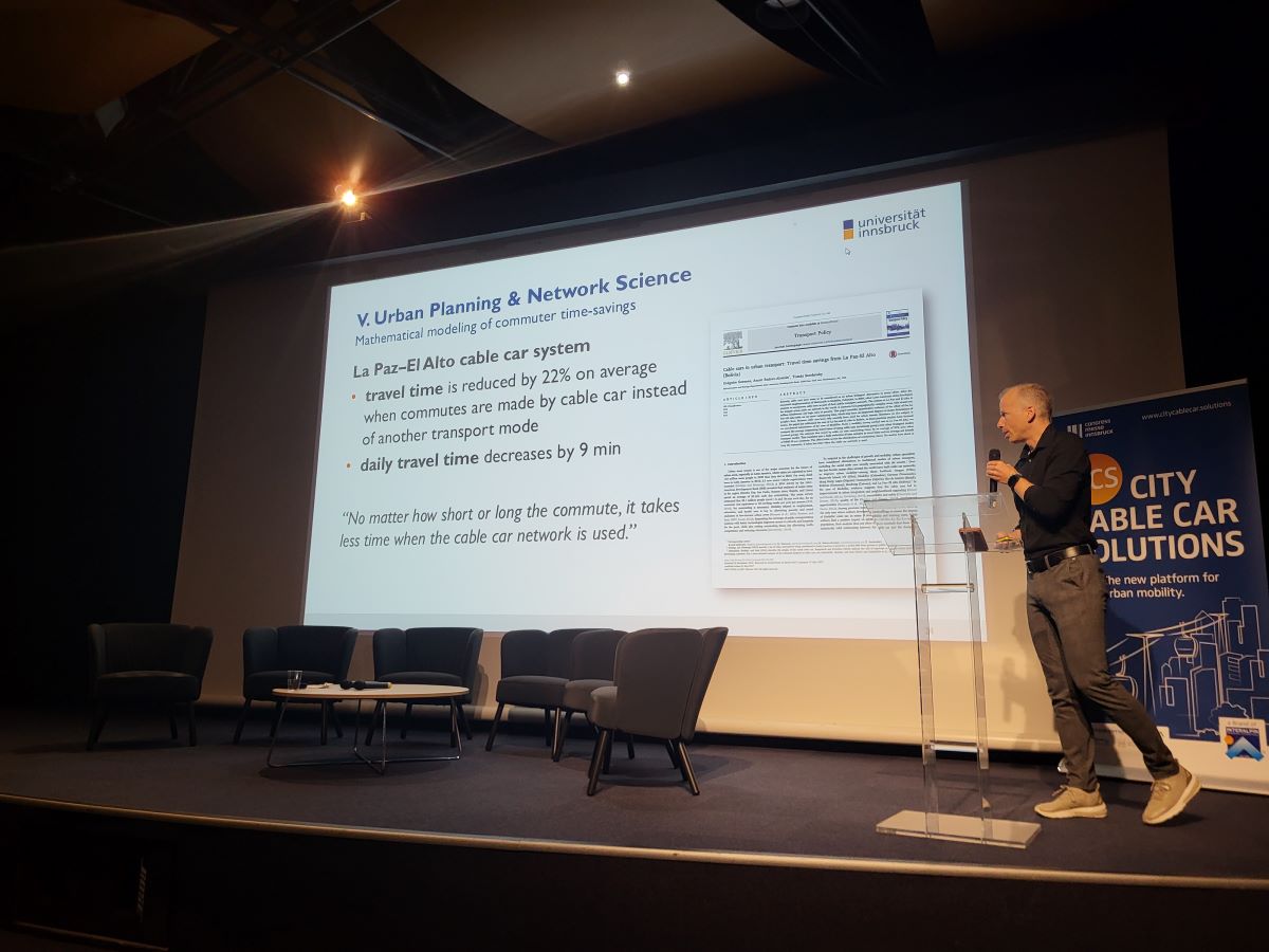 Scientific findings on cable cars as urban transport systems were then provided by Stephan Tischler, a mobility researcher at the University of Innsbruck. Among other things, he spoke about social urbanism and how cable cars can improve city life in multiple ways.