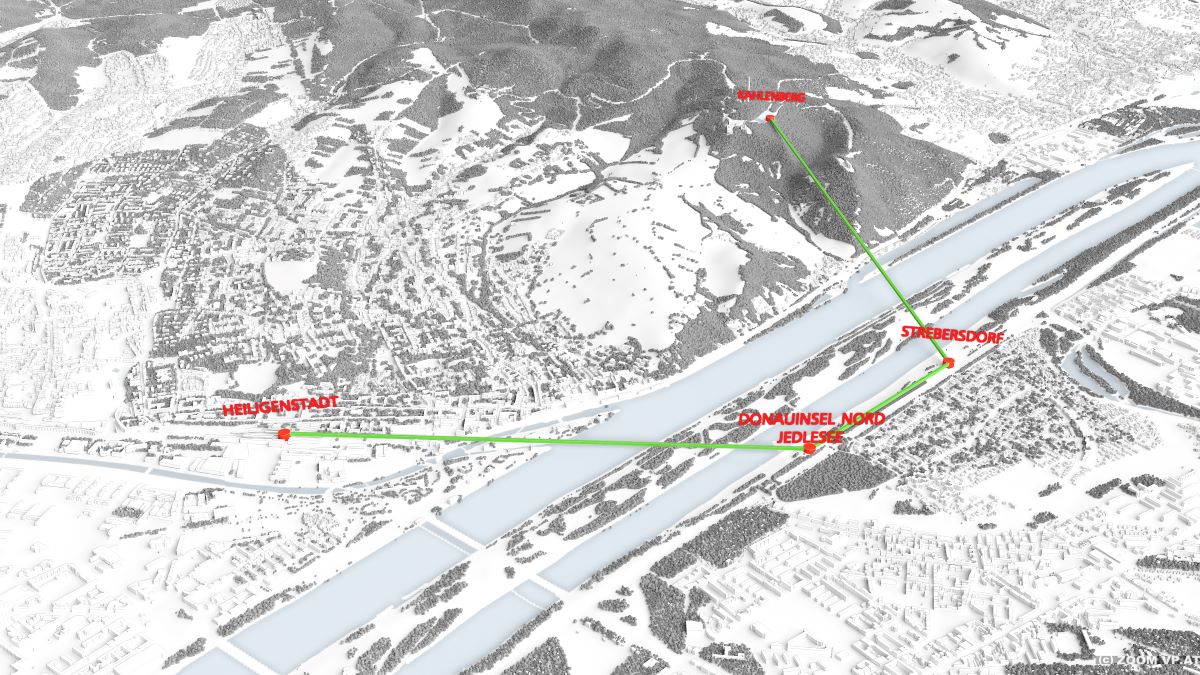 - Attractive access to the two recreational areas, Kahlenberg and the northern Danube Island, through a new – public, barrier-free, and CO₂-neutral – mobility option for athletes, pensioners, families, and local residents of the Muthgasse area (which has limited green space).