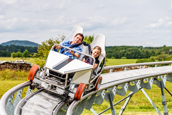 45 rote, gelbe oder blaue Schlitten warten auf die Gäste. Zunächst bringt der WIEGAND-Lifter die Rodelsportler mit ihren Schlitten bequem die ca. 625 m lange Strecke, teilweise in bis zu fünf Meter Höhe nach oben, bevor es die 1355 m lange Piste den Berg hinab geht. Dabei durchfahren sie drei hohe spektakuläre Kreisel, zahlreiche Kurven sowie Brücken und überqueren außerdem noch einige Zufahrtswege.