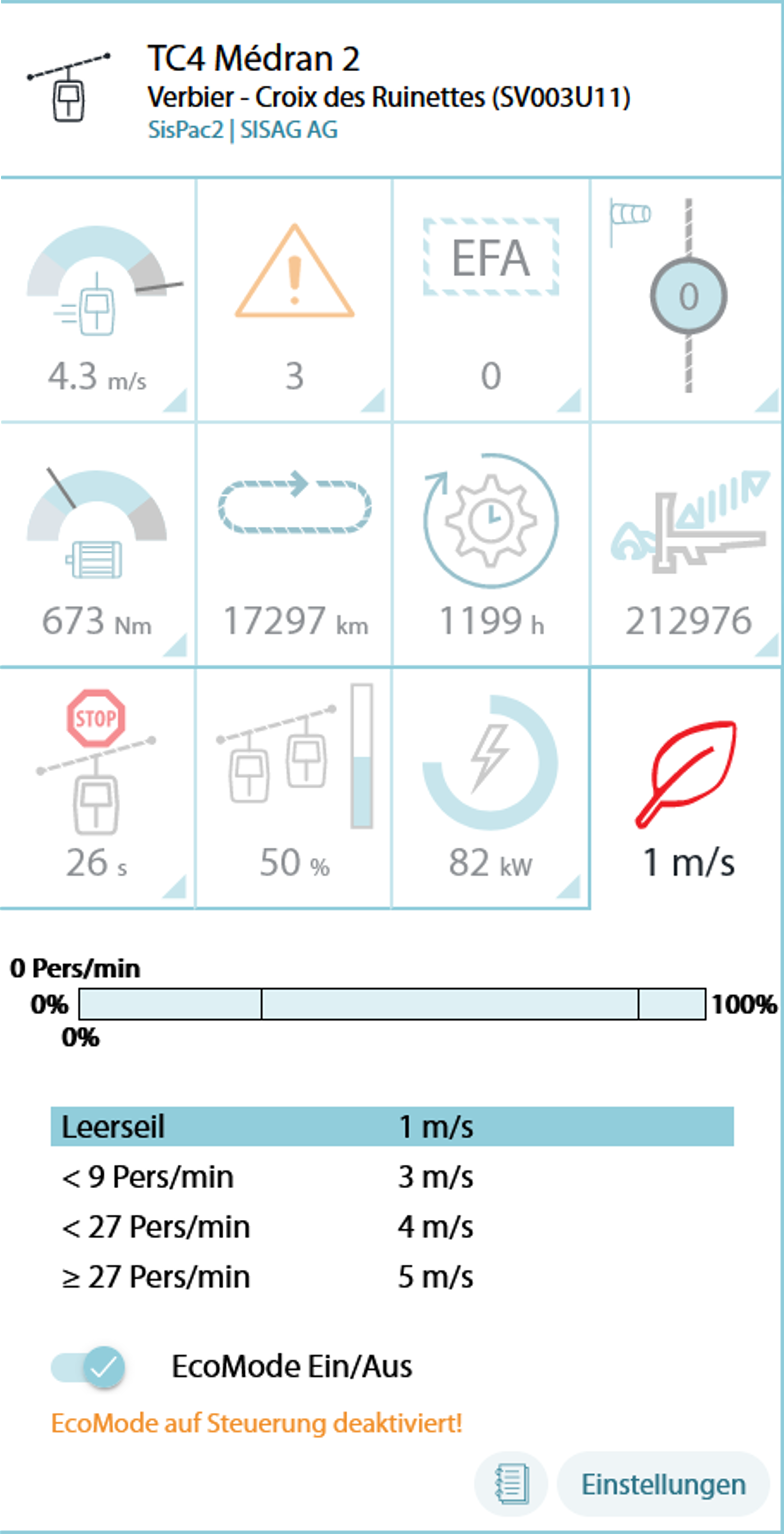 Was bei Waschmaschinen und Geschirrspülern bereits Standard ist, hält nun auch bei Seilbahnen Einzug. Der EcoMode in der Steuerung von SISAG lässt Anlagen effizienter fahren. Über das SisCockpit behält der Betreiber die Kontrolle – das zeigt das Beispiel der Bergbahn Téléverbier.