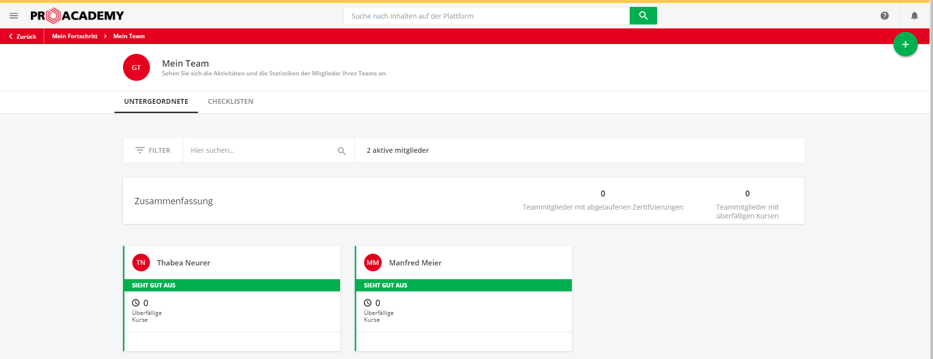 Der Teammanager sieht seine Mitarbeiter unter „Mein Team“