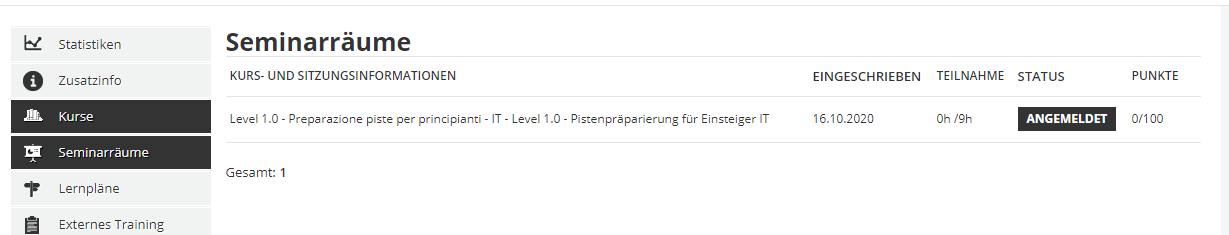 Der Teammanager kann sich anzeigen lassen, an welchen Präsenztrainings der Mitarbeiter teilnehmen wird und wann diese Kurse stattfinden.