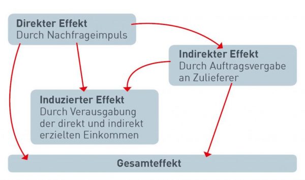 Der Wertschöpfungsrechner untersucht die Auswirkungen eines Projektes auf die Beschäftigung, die Wertschöpfung, das Einkommen, die Verbesserung der Infrastruktur, sowie das Steuer- und Abgabenaufkommen für einzelne Branchen und die Region. Dabei berücksichtigt der Wertschöpfungsrechner sowohl direkte Effekte (durch Nachfrageimpulse), indirekte Effekte (durch Aufträge an Zulieferer) als auch induzierte Effekte (zusätzlicher Konsum und Investitionen).