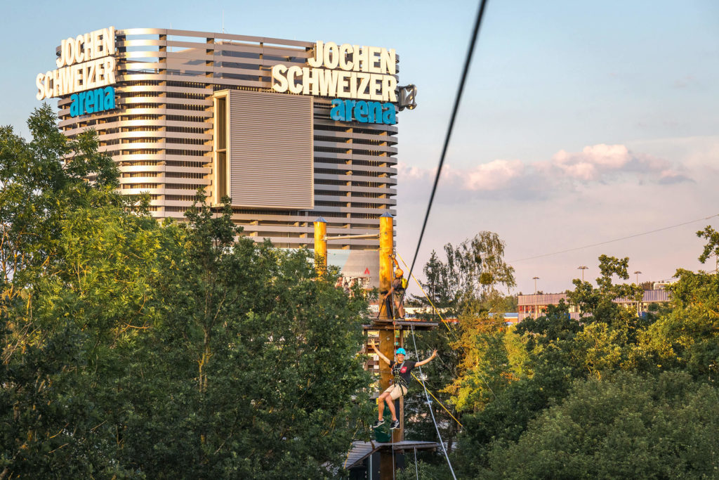 Besonders attraktiv für Erlebnishungrige sind neben dem Hochseilklettergarten und den rasanten Ziplinefahrten eine Abseilstation und der sogenannte „Sky Jump“ – Adrenalin garantiert! Diese Erlebnisdichte sucht ihresgleichen und ist im städtischen Umfeld in Europa bislang einmalig.