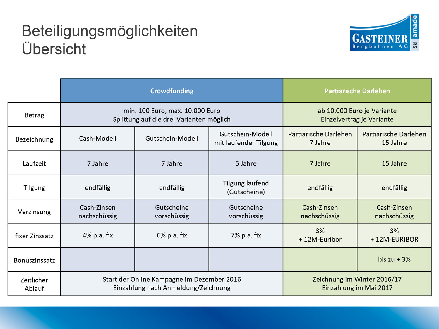 GASTEINER BERGBAHNEN AG: GÄSTE ALS INVESTOREN