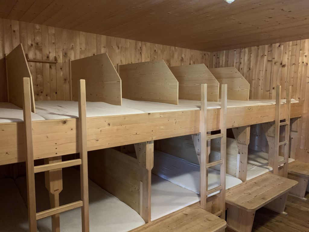 Eingebaute Trennwände in einem Schlaflager auf der Lizumerhütte in Tirol.