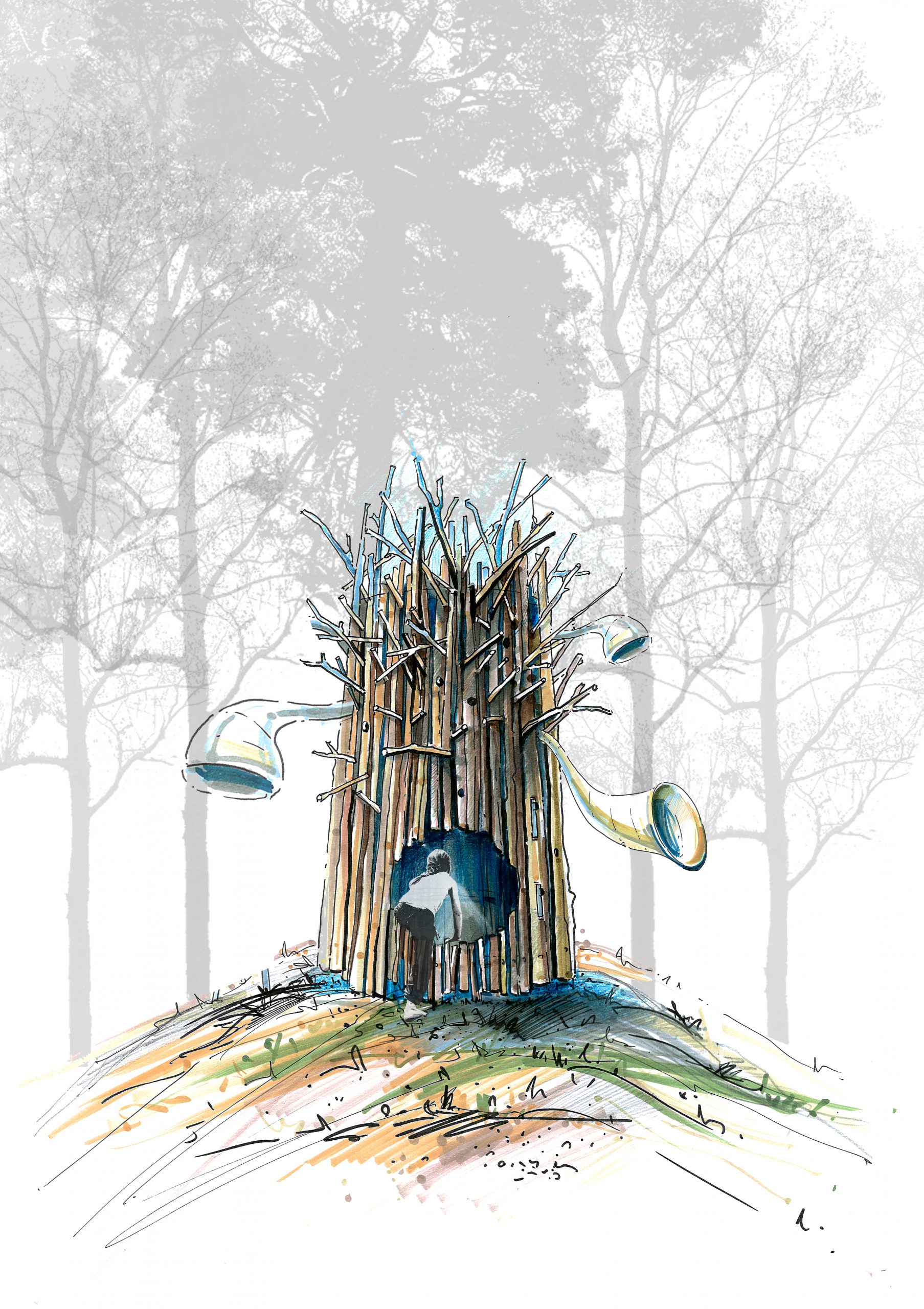 Im vergangenen Jahr hat KUKUK in den Alpen gleich drei neue Projekte realisiert. In Adelboden entwarfen die Gestalter einen Erlebnispfad, der von der Bergstation Sillerenbühl talwärts führt. Über mehr als drei Kilometer und elf Stationen lädt er ein, die lokale Sage des „Vogellisi“ zu entdecken.