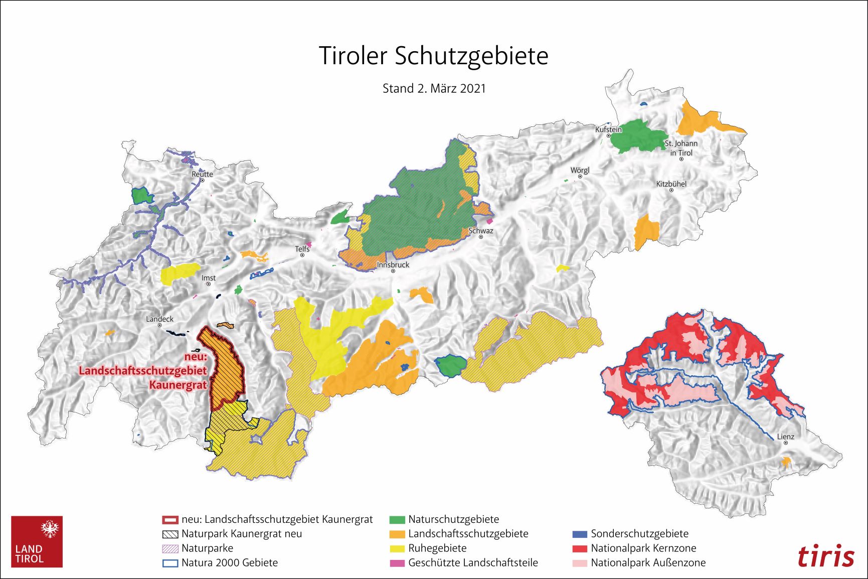Mit dem in der Landesregierung gefassten Beschluss wird der Kaunergrat zum Landschaftsschutzgebiet erklärt und zugleich in den Naturpark integriert.