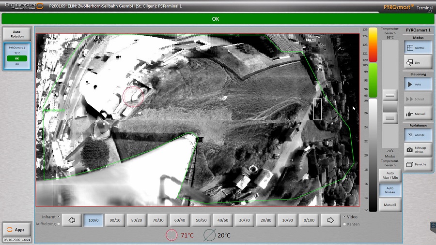 „Um den gesamten Gefahrenbereich zu überwachen, reicht ein einziges Pyrosmart-System an der zweiten Seilbahnstütze aus“, sagt Hillebrand. Von dort aus überwacht die scannende Infrarotkamera einen 15 Meter breiten und 370 Meter langen Korridor.