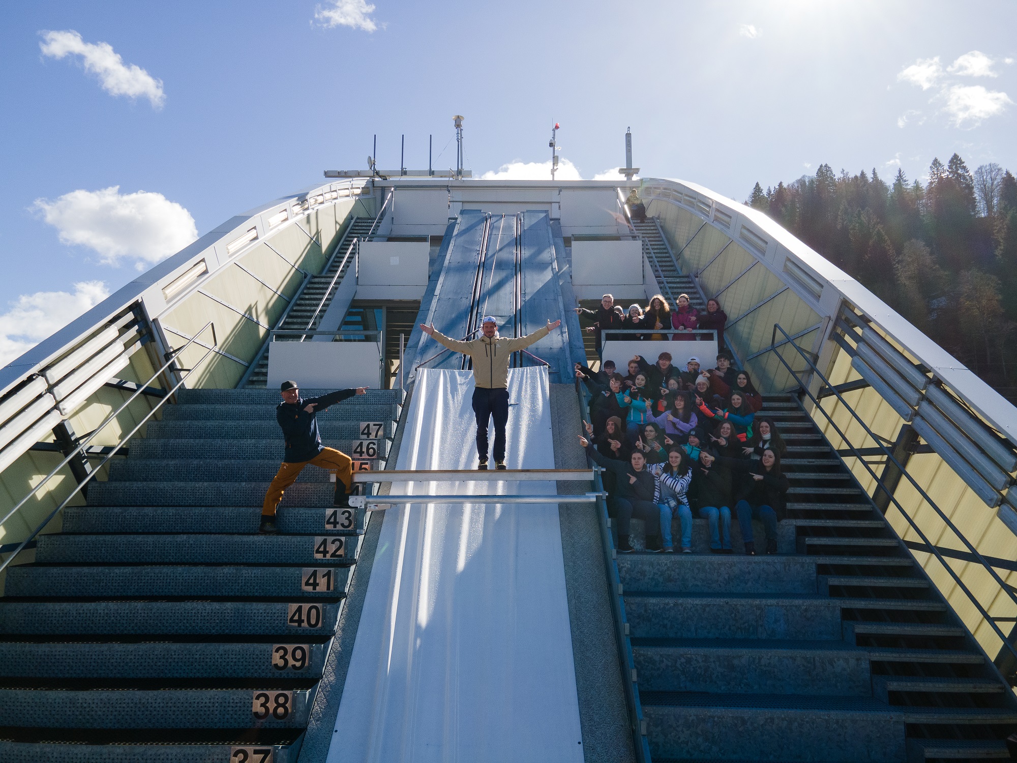 Am Ende des Tages standen alle SchülerInnen so sicher auf Ski, dass Liften und leichtere Abfahrten auch für die absoluten Anfänger keine Schwierigkeit mehr darstellten. Am Donnerstagmorgen stand die Besichtigung der Olympia-Skisprungschanze auf dem Plan.
