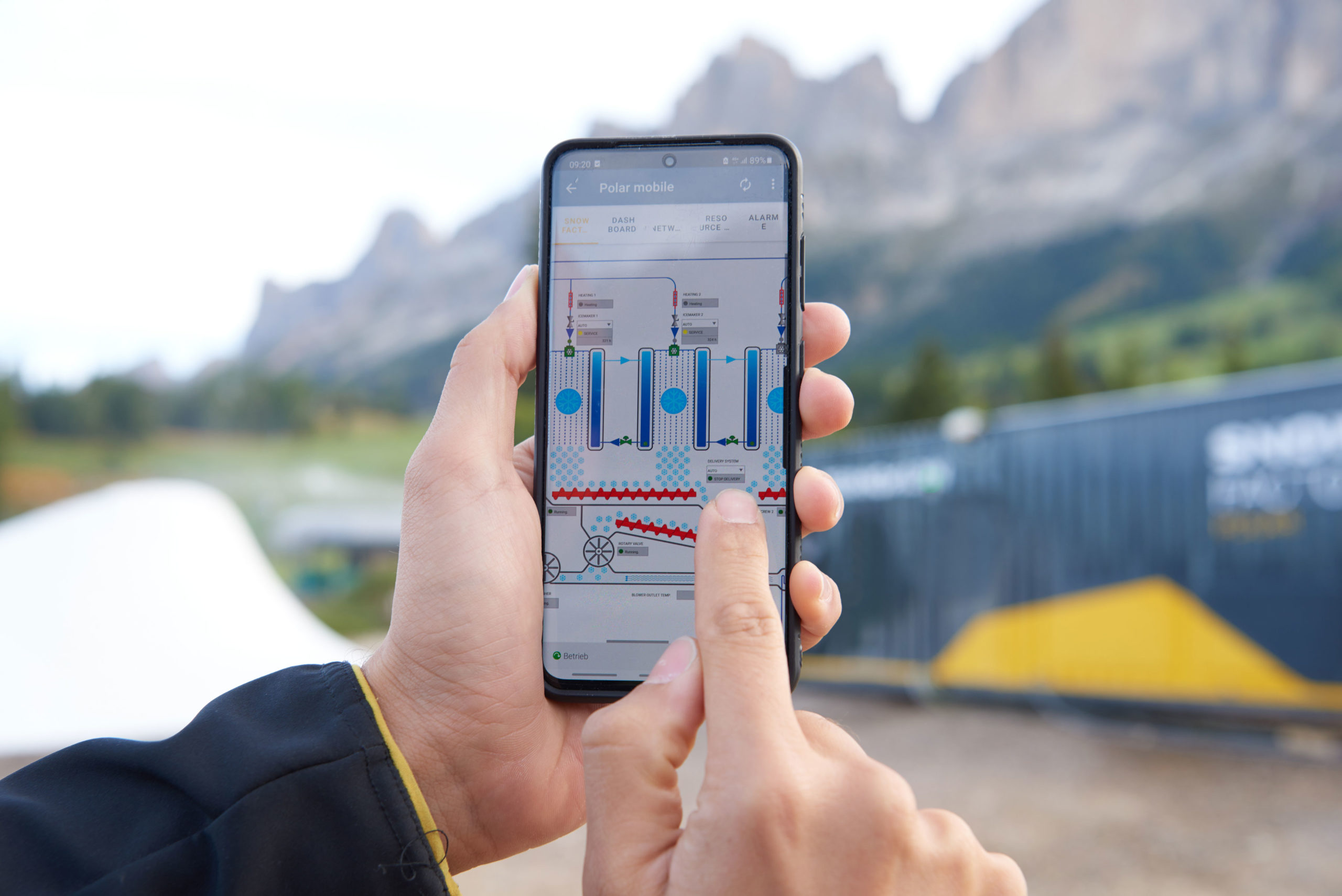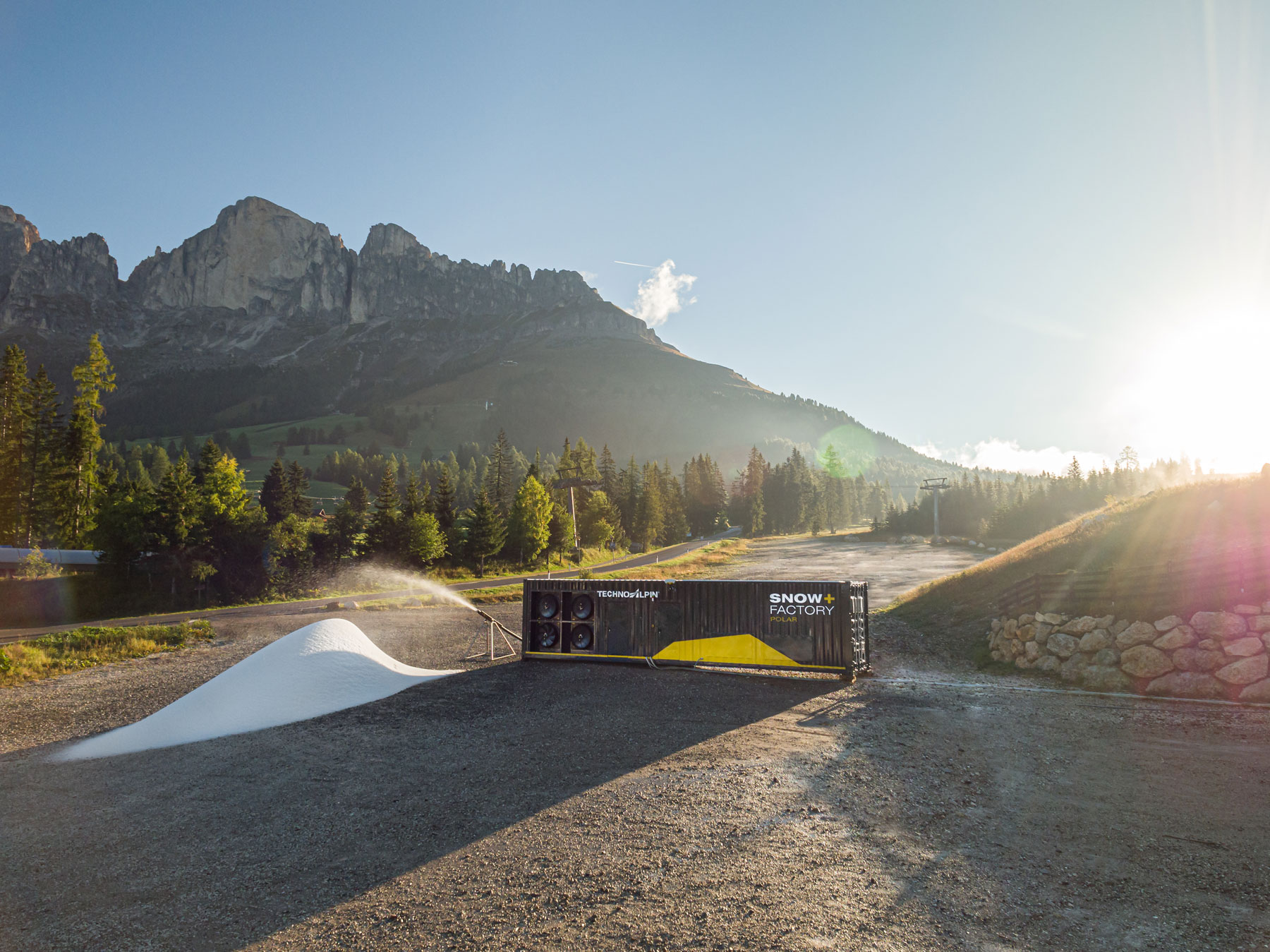 Die effiziente Technologie mit geschlossenem Kühlkreislauf erlaubt eine Schneeproduktion an 365 Tagen im Jahr – auch bei wärmeren Temperaturen.