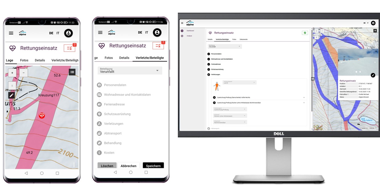 Mit dem Modul Rettung kann der Pistenrettungsdienst Unfälle schnell erfassen, dokumentieren und – zumindest in der Schweiz – direkt dem Seilbahnverband melden.