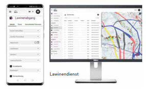 Lawinenverantwortliche können mit dem Modul Lawinendienst ihr Lawinenmanagement dokumentieren und kartieren. Sprengungen werden schnell erfasst und Sprengarbeiten korrekt dokumentiert.
