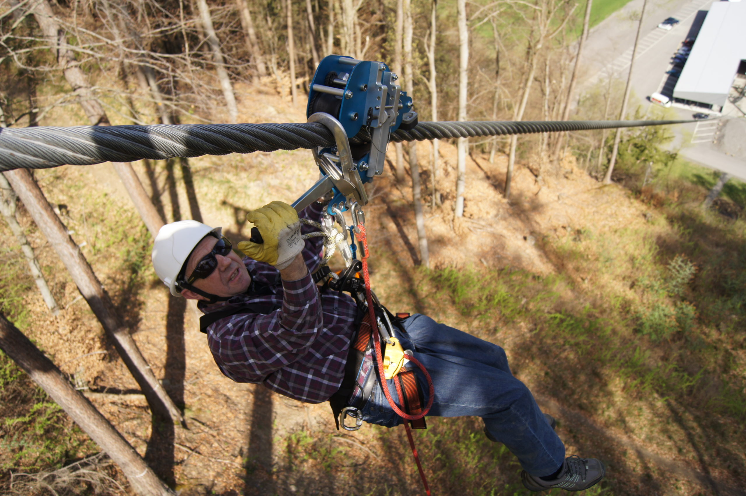 „Unser Ziel war, ein leichtes und in der Bauform möglichst kompaktes Gerät zu entwickeln, welches mit einer Fliehkraftbremse eine konstante Geschwindigkeit aufweist und maximale Sicherheit garantiert. Zudem legten wir den Fokus darauf, dass auch möglichst steile Seilfelder befahren werden können“, sagt Sepp Immoos.