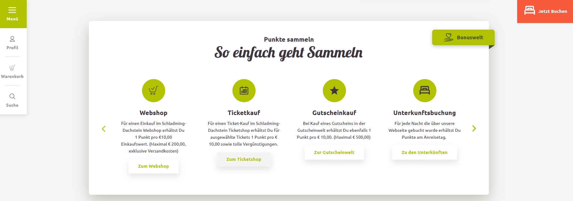 So ist das Kundenbindungsprogramm fixer Bestandteil des Tourismusportals und fügt sich nahtlos in die Buchungsplattform von Schladming-Dachstein ein, inklusive Anbindung der Schladming-Dachstein-App.
