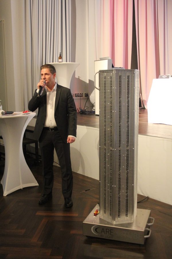 Planlicht-Geschäftsführer Gerald Kohler präsentierte die Desinfektionssäule. Foto: SI/Surrer