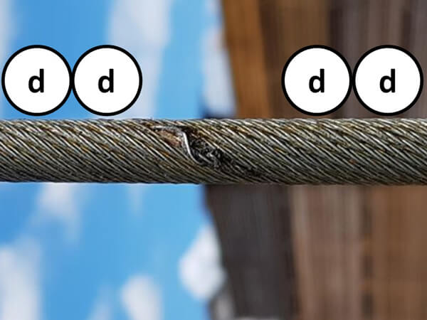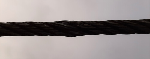 Es fällt nicht immer leicht, den passenden Bildausschnitt zu wählen, um ein aussagekräftiges Foto zu machen. Ein wenig „Umgebung“ des unbeschädigten Seils hilft ungemein, um den Schaden vom grundsätzlichen Seilzustand differenzieren zu können. Links und rechts des Seils sollte daher auf einer Länge von etwa ein- bis zweimal Seildurchmesser das gesunde Seil zu sehen sein.