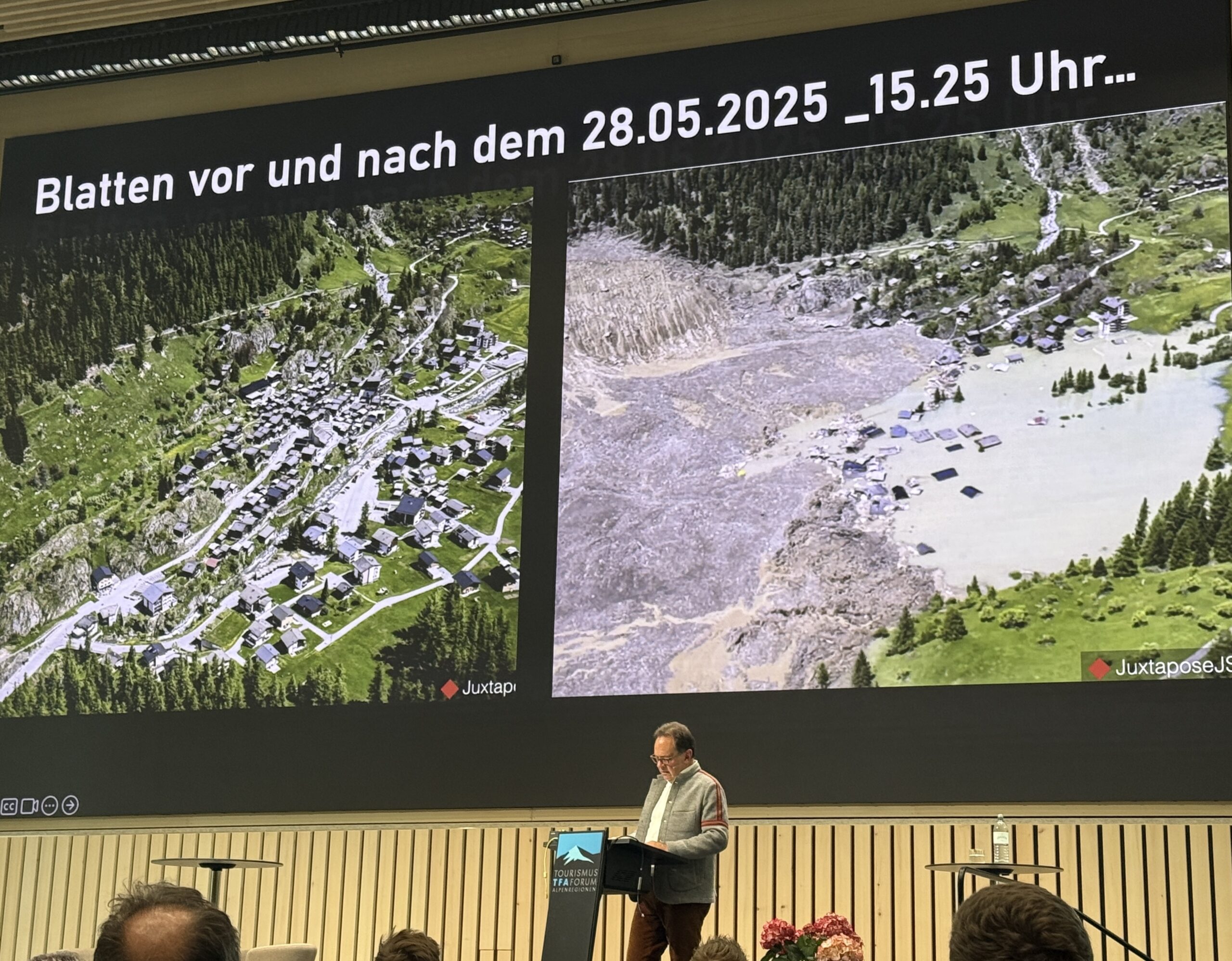 Über den Umgang mit Naturkatastrophen, die sich nicht verhindern lassen, sprach Fernando Lehner, Präsident der Aufbaukommission „Blatten 2030“. Die Lawine aus Eis und Schutt hatte das Dorf Blatten im Lötschental am 28. Mai 2025 zerstört. Rund 300 Menschen konnten rechtzeitig evakuiert werden.