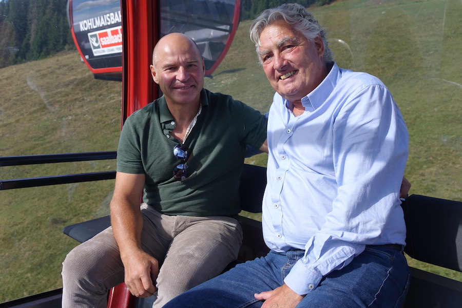Marc Girardelli und Wolfgang Eder (Mountain Excellence) in der Kohlmaisbahn für die Podcast-Aufnahme zur „Zukunft des Skisports“.