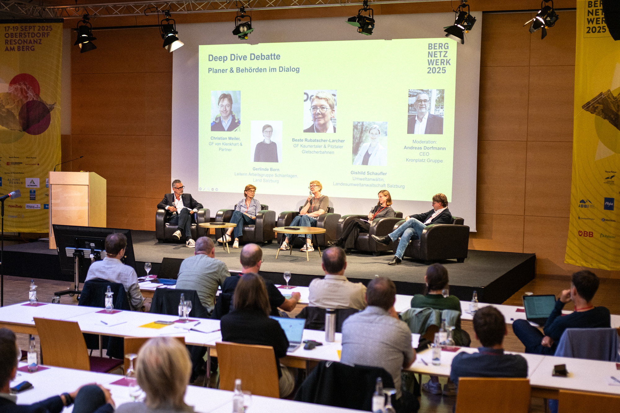 Unter der Moderation von Andreas Dorfmann (CEO Kronplatz), diskutierte der Seilbahnplaner die Hürden und Erfolgsfaktoren zusammen mit Beate Rubatscher-Larcher (GF Kaunertaler und Pitztaler Gletscherbahnen), Gerlinde Born, Leiterin Schianlagen Land Salzburg, und Gishild Schaufler, Landesumweltanwältin von Salzburg.