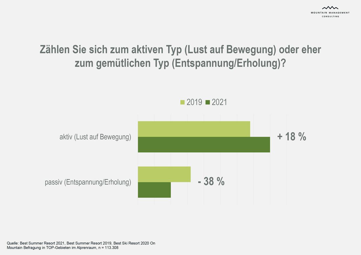 - Das Bedürfnis nach Aktivität und Bewegung im Sommerurlaub hat im Vergleich zu 2019 stark zugenommen.