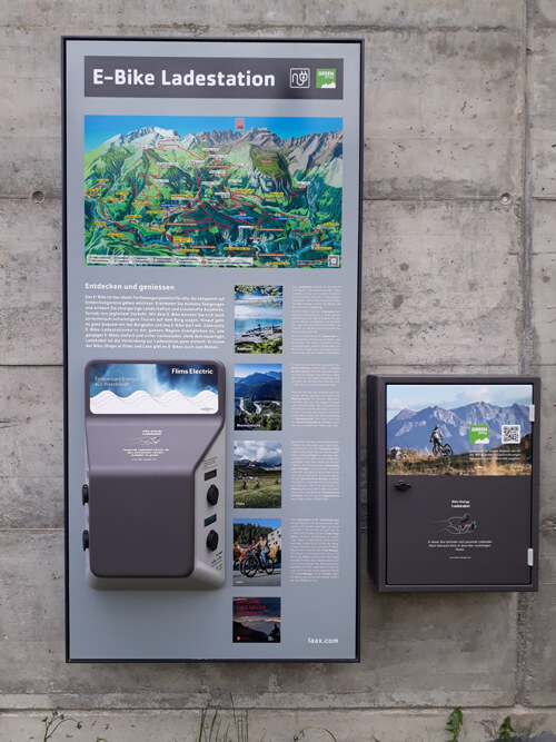 Die Ladestationen des österreichischen Herstellers BIKE-ENERGY wurden entlang aller markierten Bikerouten angebracht. Bei deren Positionierung achtet man neben den technischen Gegebenheiten auch darauf, dass sich der Punkt für eine wohlverdiente Pause eignet.