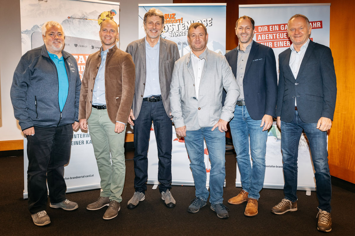 Jürgen Zudrell (Geschäftsführer Kristbergbahn Silbertal), Thomas Ettenberger (Leiter Vertrieb und Marketing Silvretta Montafon), Markus Burtscher (Geschäftsführer Golm Silvretta Lünersee Tourismus), Thomas Lerch (Geschäftsführer Gargellner Bergbahnen), David Domig (Geschäftsführer Bergbahnen Brandnertal) und Peter Marko (Geschäftsführer Silvretta Montafon)