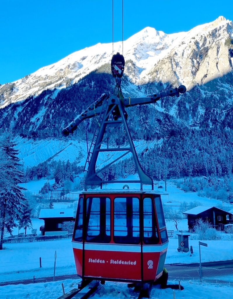 Die ikonische Pendelbahn „Stalden-Staldenried“ steht als eindrucksvolles Zeugnis historischer Seilbahntechnik und lässt die Pionierzeit des alpinen Verkehrs wieder lebendig werden.