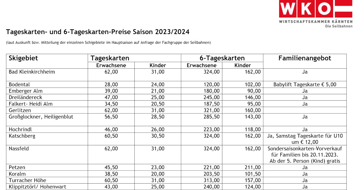 „Es ist uns sehr wichtig, dass das Skifahren weiterhin leistbar ist. Besonders beliebt ist der Topskipass, der im Vorverkauf für Erwachsene unter 700 Euro kostet. Kleinere Skigebiete punkten vor allem mit attraktiven Familienangeboten, die sehr geschätzt werden“, betont Manuel Kapeller-Hopfgartner, Fachgruppenobmann der Kärntner Seilbahnen.