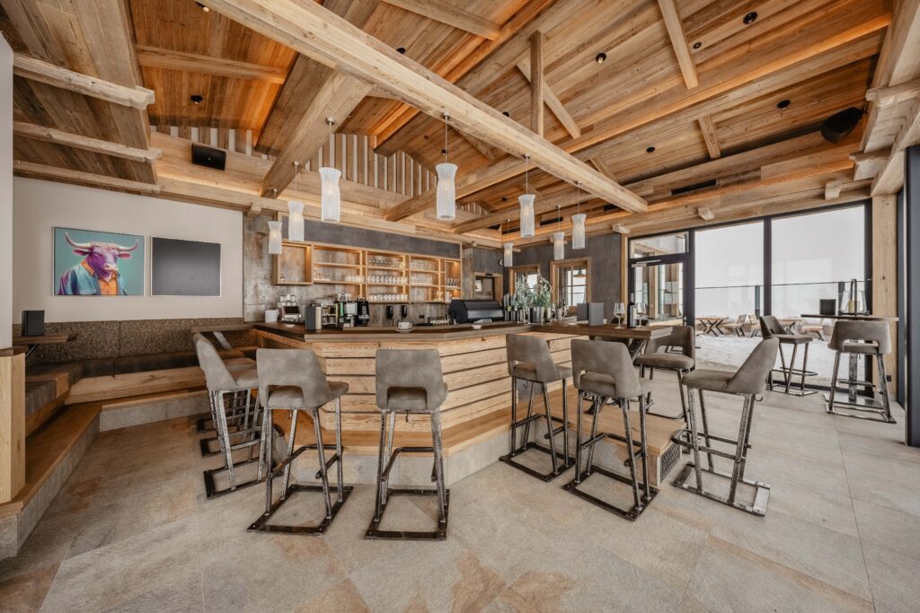 Die Panoramabar des neuen Restaurants bietet nicht nur erfrischende Getränke, sondern auch einen spektakulären Blick auf die umliegende Bergwelt – der perfekte Ort für gesellige Stunden bei jedem Wetter.